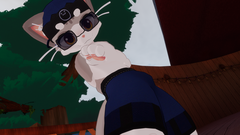 This is a clothing set for the Jinxed Kitty avatar, it comes with a turtle neck sweater, knee shorts, beanie, glasses and ear rings.